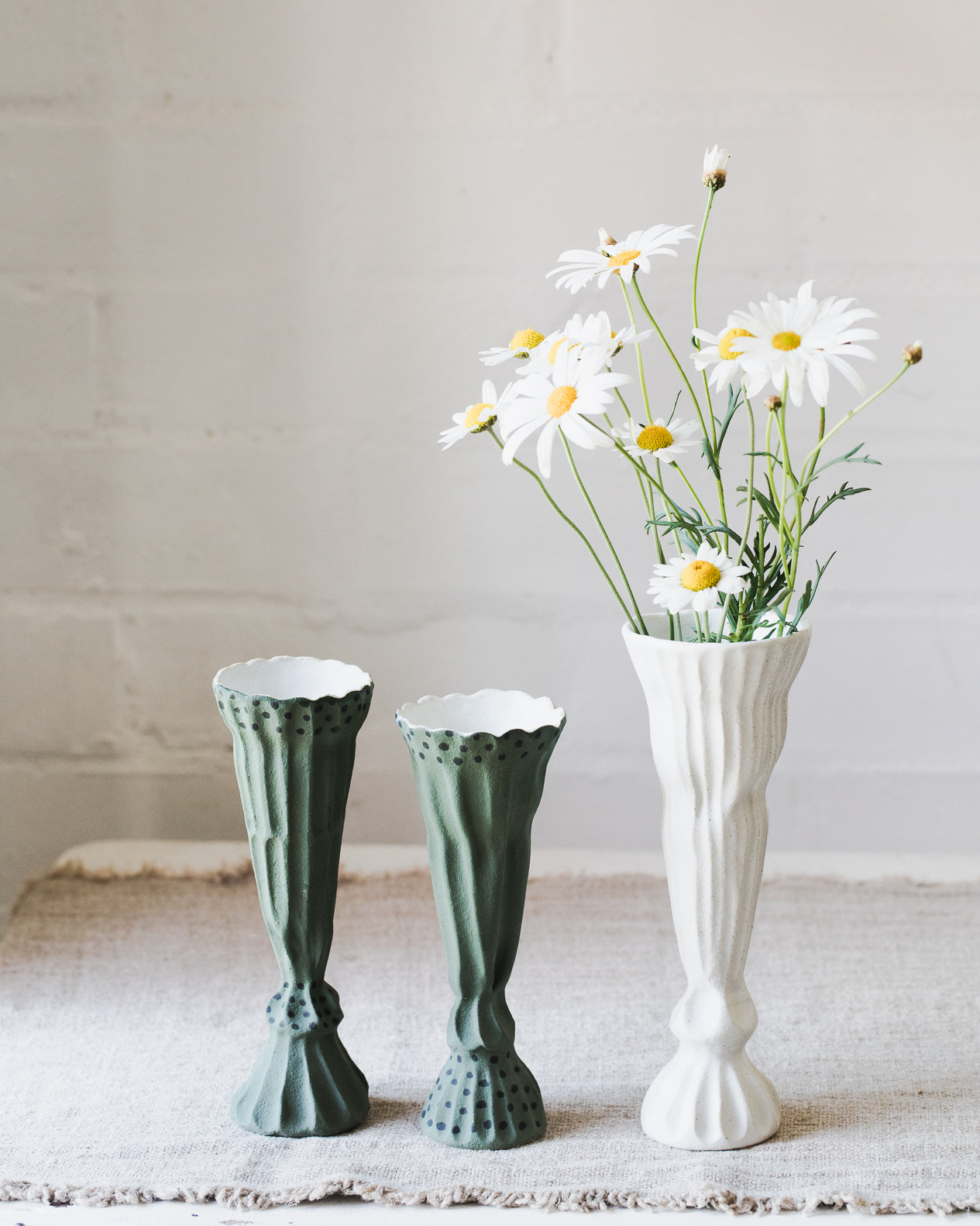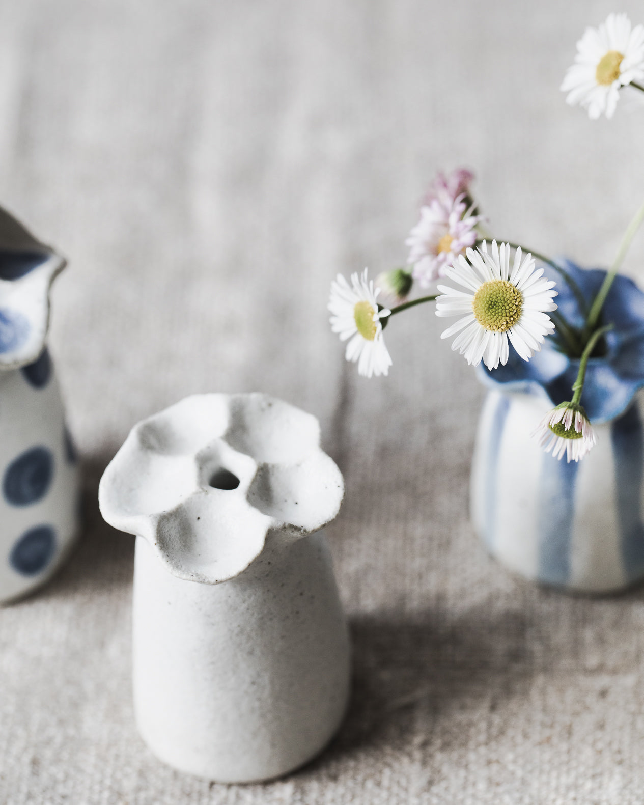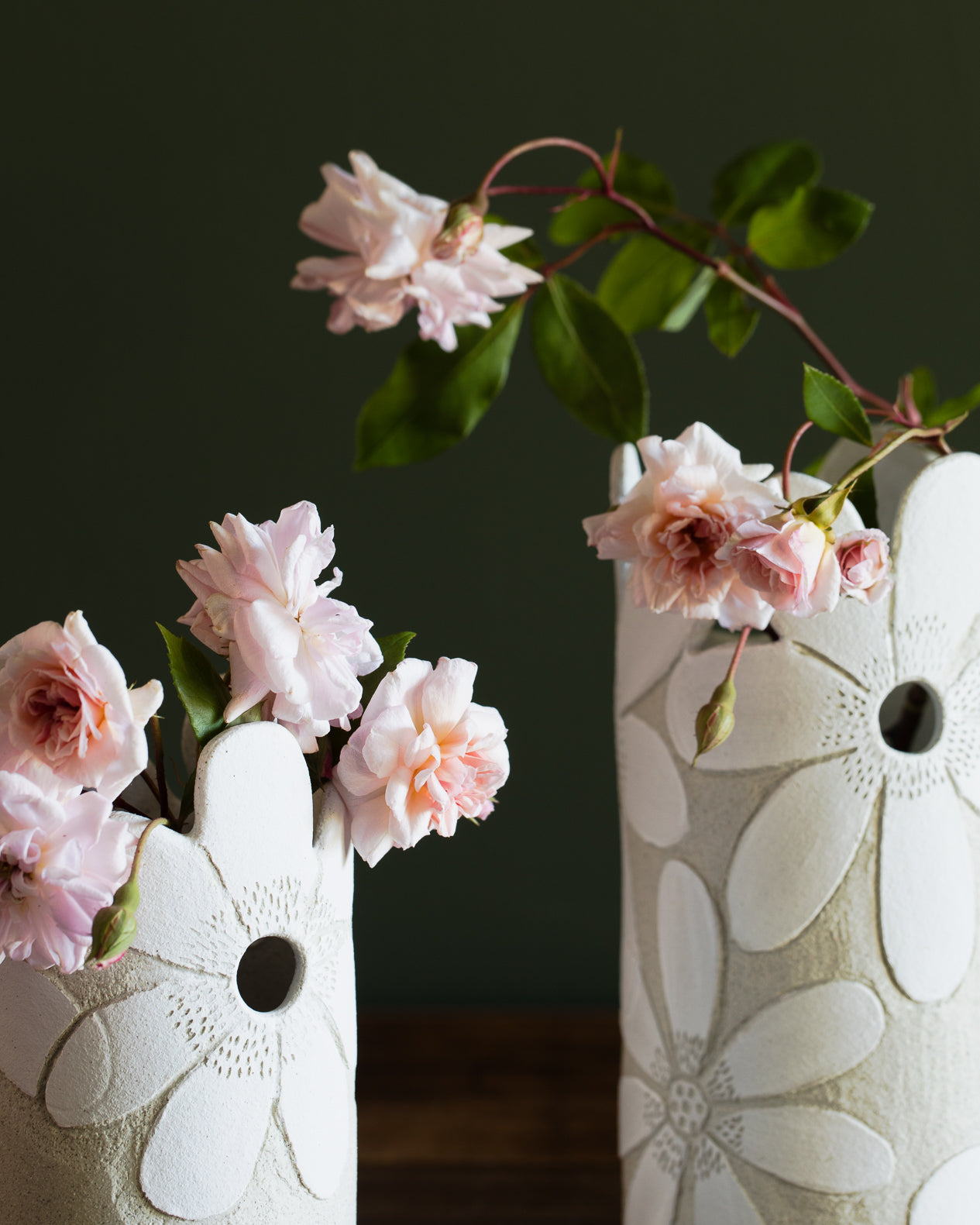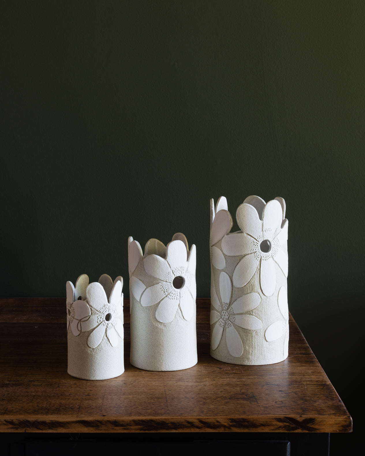 Daisy Flower Vases Handmade from a beautifully rustic textured white clay body, these cylinder shaped...